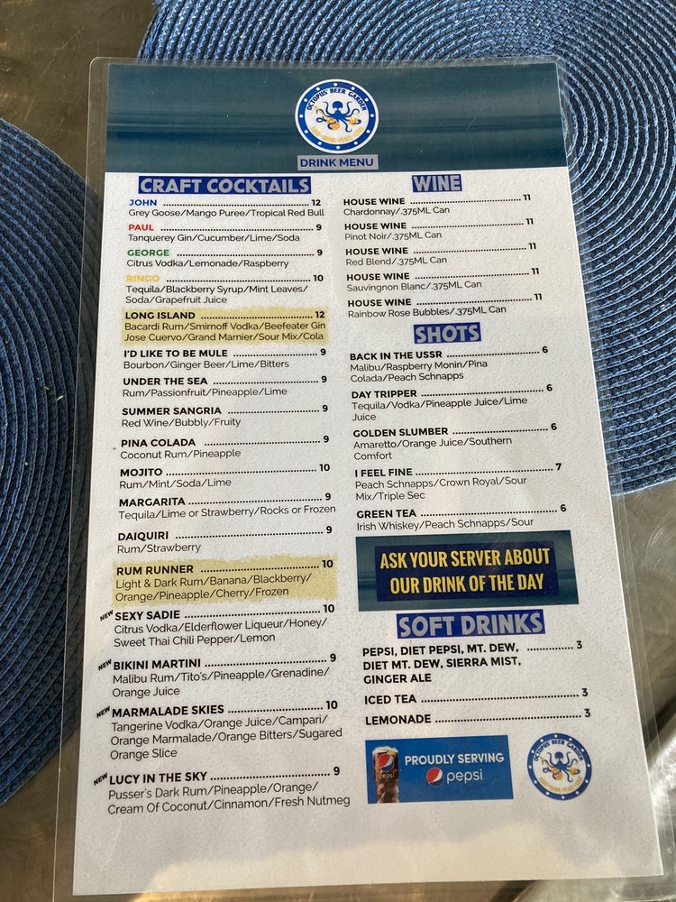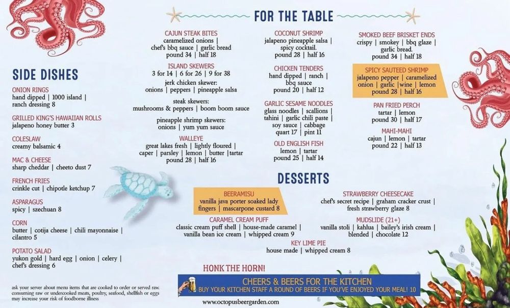 Octopus’ Beer Garden - Temp. CLOSED Menu